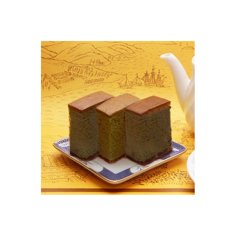 使用大顆的粗砂糖、嚴選新鮮雞蛋,充分使抹茶散發出最原始的香氣,師傅以熟練的技術烤制而成的美味逸品。使用優質的日本國產抹茶。長崎蛋糕已切成10等份。