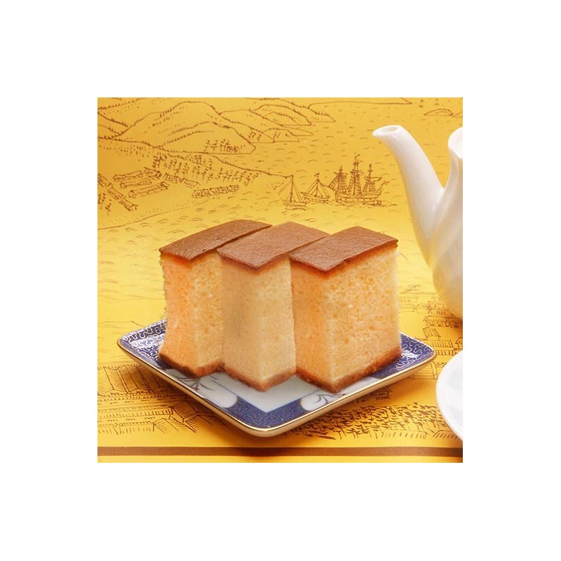 使用大顆的粗砂糖、嚴選新鮮雞蛋、優質的奶油起司,經過無數次失敗反覆嘗試後,所製成的自豪逸品。有著濃郁風味的優質奶油起司,以及口感鬆軟綿密的美味長崎蛋糕。長崎蛋糕已切成10等份。