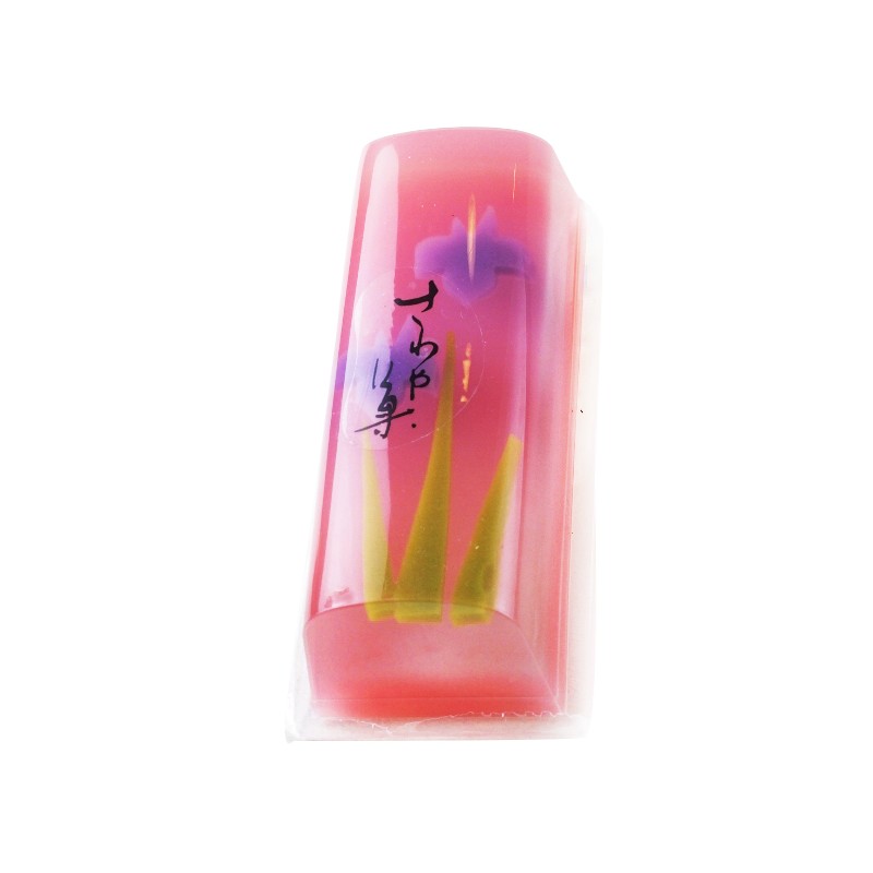 因此從側面看就會發現菖蒲花的花樣像是漂浮在粉紅色的羊羹中,十分活潑生動。