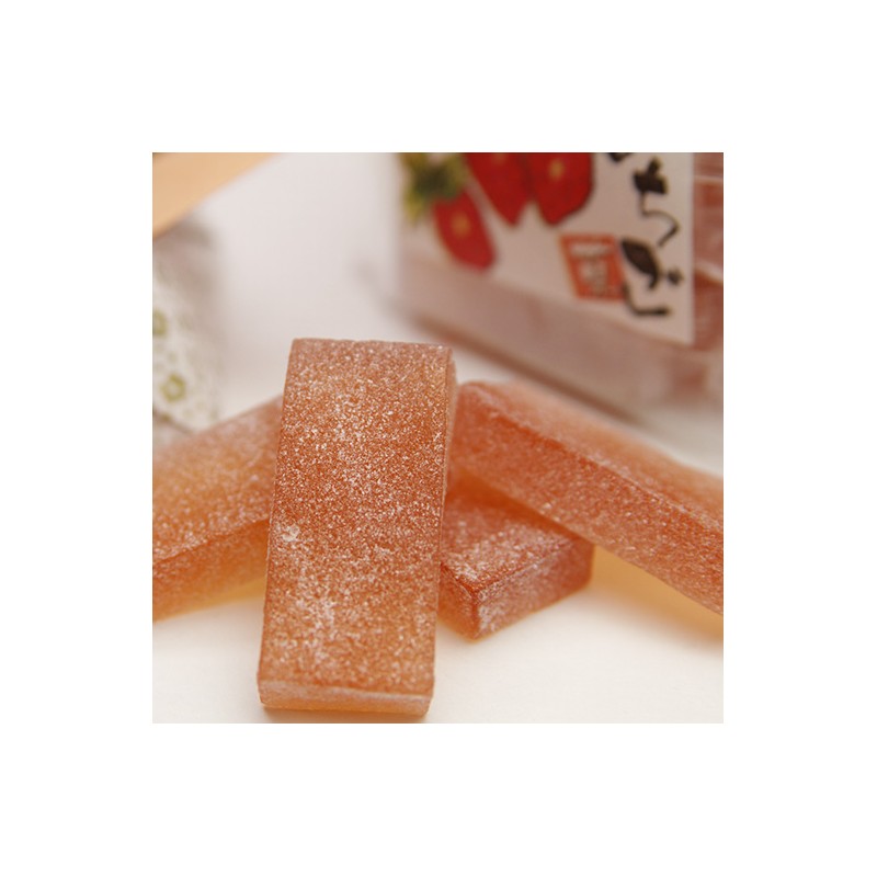 [原料] 水飴(日本製造)、砂糖、草莓果汁、澱粉、粘稠劑(果膠)、調味劑(檸檬酸、檸檬酸鈉)、香料、大豆卵磷脂