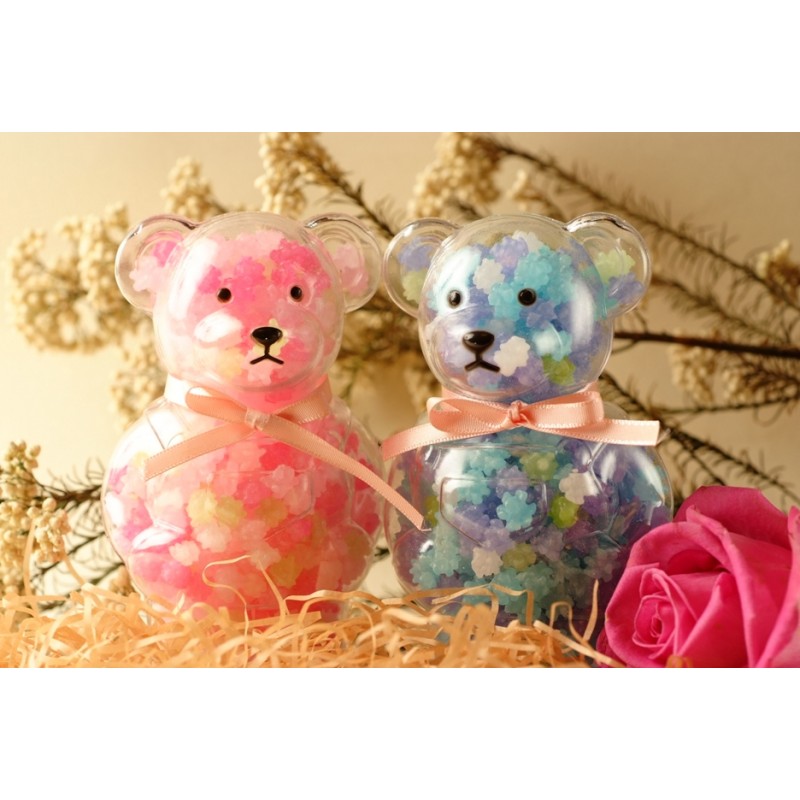 可愛的小熊(身高13cm)的包裝中,放入粉紅色的可愛櫻花草金平糖。