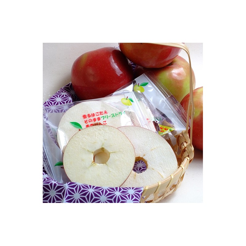 本品就是使用其中味道最好的"富士"蘋果,將芯去除,切成厚度約1公分的圓片狀,透過冷凍乾燥,其形狀也變得很可愛呢!