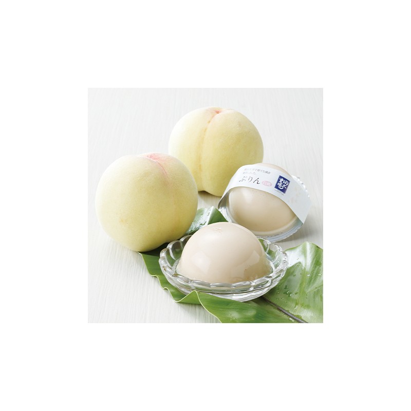 使用在岡山大學農學部栽培的白桃製成的水果布丁。將白桃的果肉製成泥後,再製作成口感滑順的美味布丁。可以盡情享用到岡山縣特產的白桃最原始的優質風味。