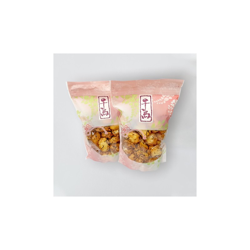 米果的形狀就像是滾動的古樹樹幹,是醬油口味的米菓。