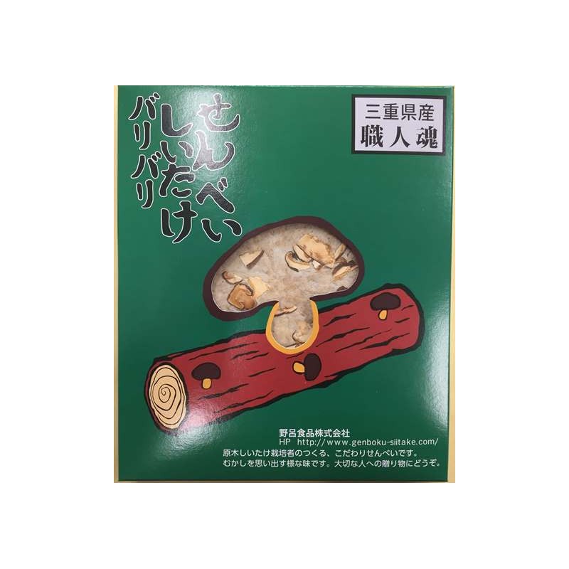 將日本三重縣產的絹光米(白米)和原木香菇的乾燥粉末以1:1的比例調配混合,再使用三重縣產的醬油來調味,每一片都是以手工烤製而成。本品和栽培原木香菇一樣,都是十分費工才完成的製品。