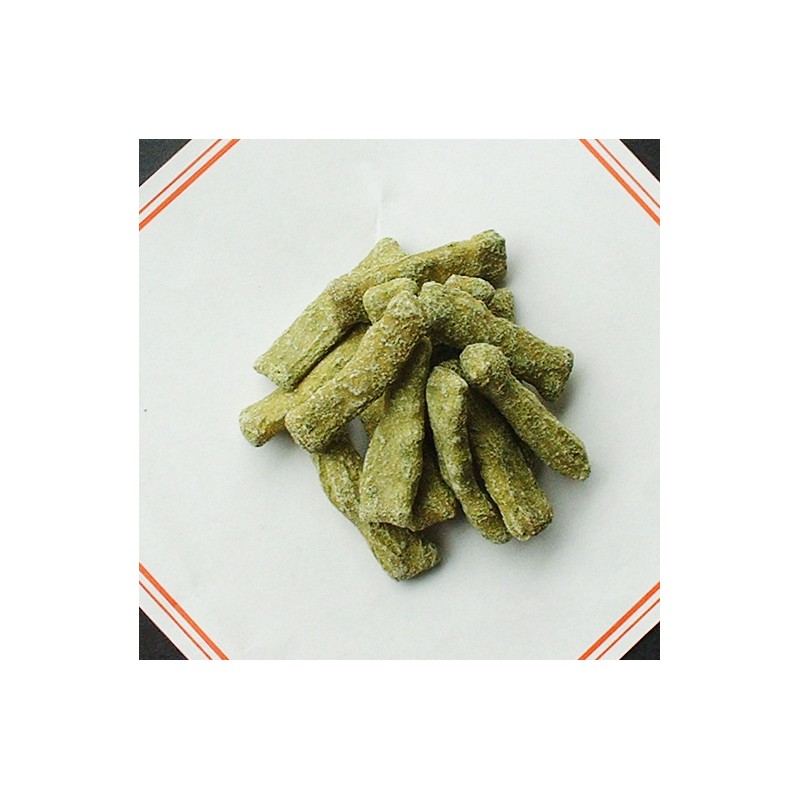 以優質的日本國產糯米為主要原料,加上宇治產的抹茶和砂糖製成的京都風味抹茶米菓。