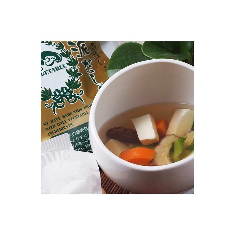 完全沒有使用動物性原料,只使用植物性原料、對各方面徹底斤斤計較才製作而成的“植物性高湯粉”。