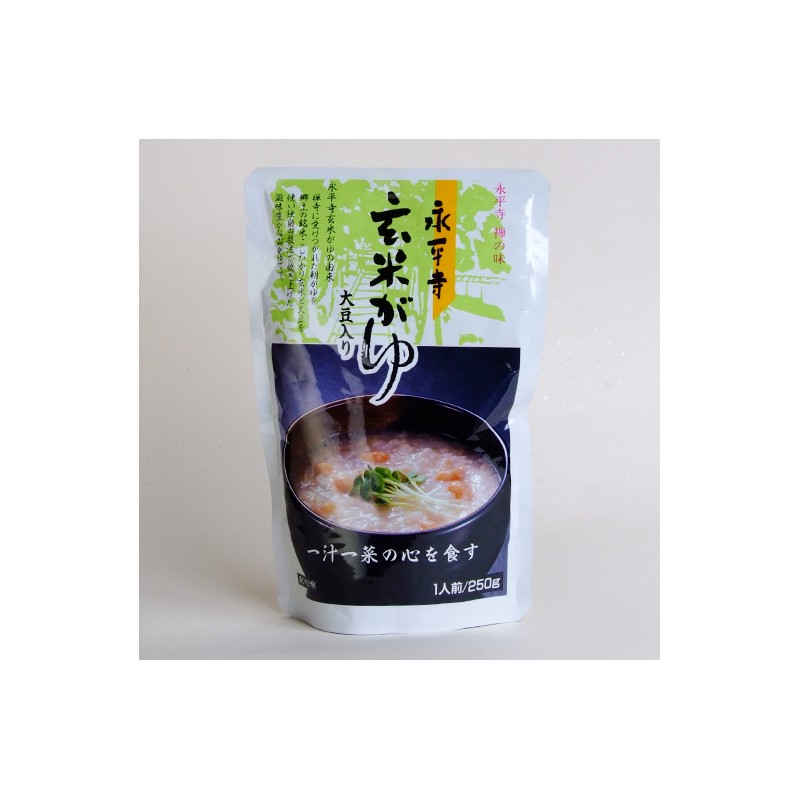 被福井的禪寺傳承的永平寺早粥系列。使用福井縣產的越光米用獨特的技術炊成筷子能夠立起的程度的玄米粥。將用來灌溉越光米的水,把水中礦物質用活性碳過濾法精製後使用。鹽使用蒙古無污染的天然鹽湖取得的天外天鹽。不使用任何添加物。