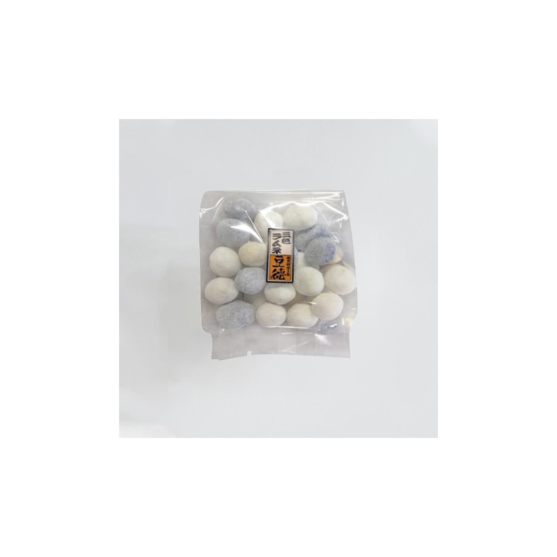 [原料] 花生(美國產)、玉米粉、糖粉、葡萄糖、植物油脂(棕櫚油)、麵粉、澱粉(玉米)、砂糖、還原水飴、糯米粉、麥芽糖漿、檸檬粉、碳酸氫鈉、調味劑(檸檬酸)、香料、複方粘稠劑(醋酸澱粉、糯米)、食用色素(梔子藍、梔子黃)、膨脹劑(碳酸氫鈉、碳酸氫銨)、乳化劑(大豆卵磷脂)