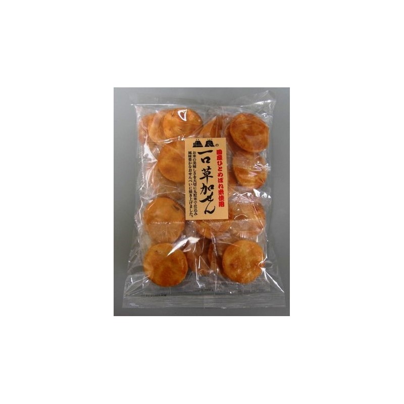 使用「日本一見鍾情米種」整顆米蒸製成麵糰,精心烘烤後,淋上由本醸造醤油調製成的秘傳醬汁,製成傳統的草加一口大小的煎餅,帶有濃郁的米香。不使用任何化學調味料或食品添加劑。