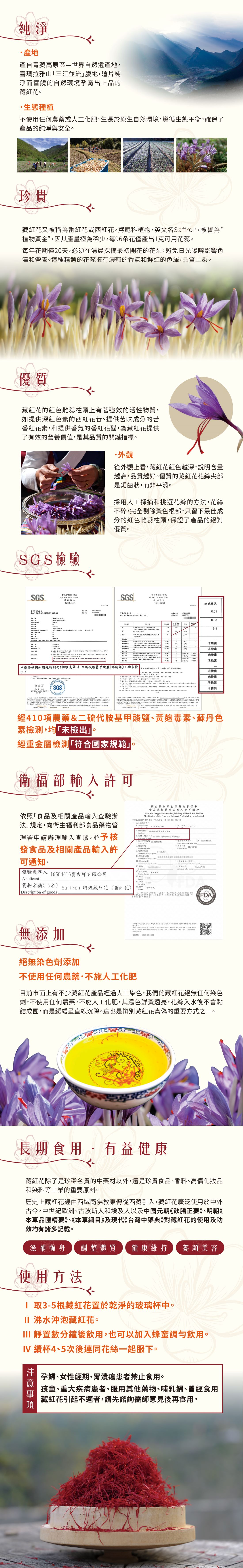 歷史上藏紅花經由西域隨佛教東傳從西藏引入,藏紅花廣泛使用於中外古今,中世紀歐洲、古波斯人和埃及人以及中國元朝《飲膳正要》、明朝《本草品匯精要》、《本草綱目》及現代《台灣中藥典》對藏紅花的使用及功效均有諸多記載。